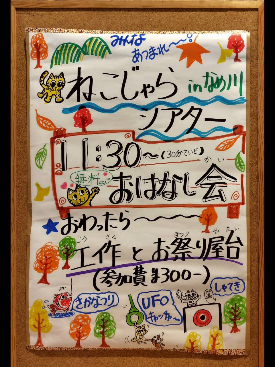 紅葉にはまだ早い東温市の滑川でおはなし会とワークショップをしました。来てくれた皆様ありがとうございました。